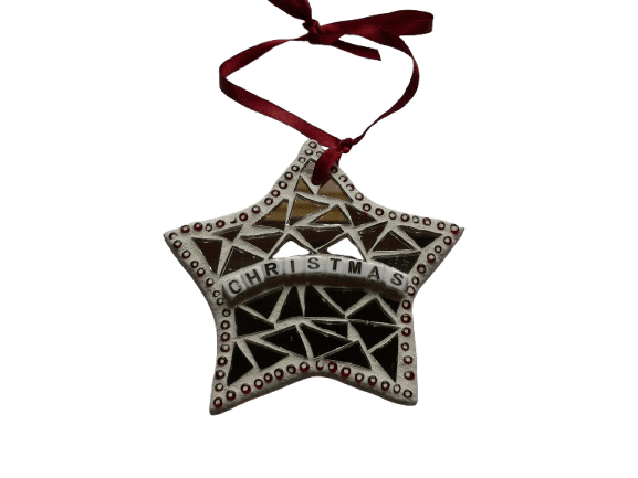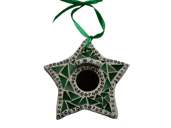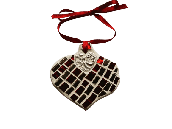 Join me for a hands on workshop where you’ll design a one of a kind mosaic Christmas Ornament using tiles, beads and more!