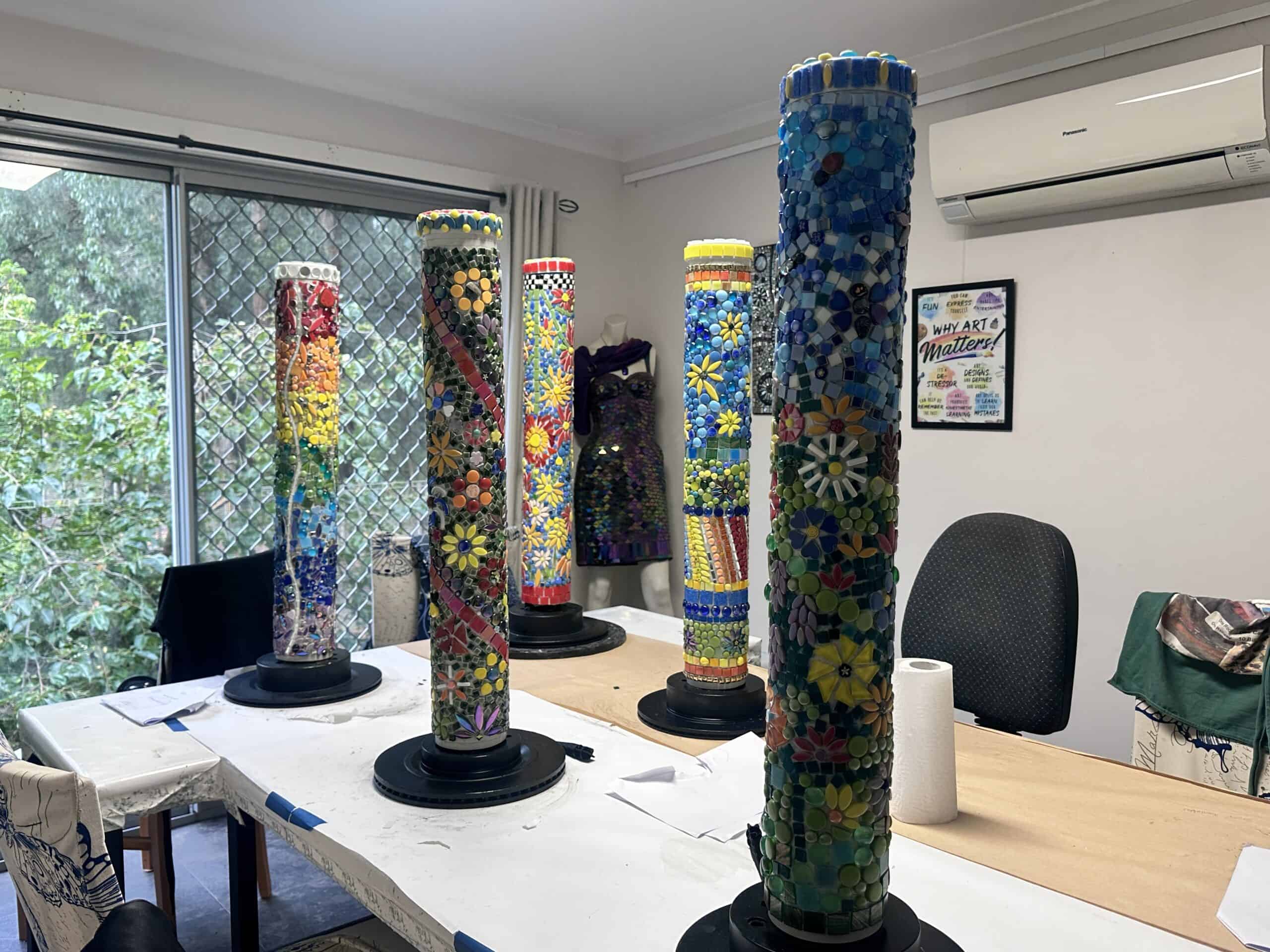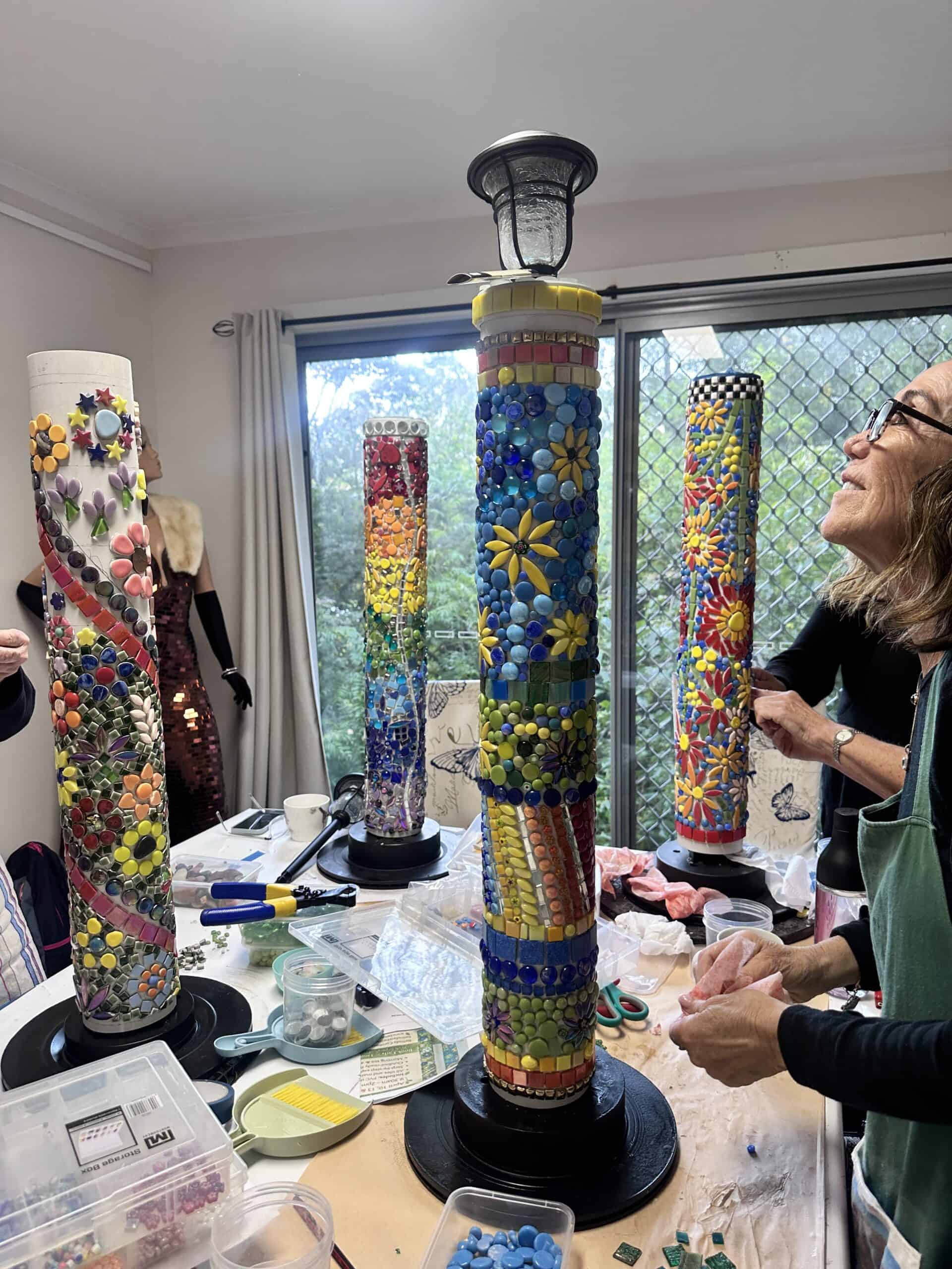 This relaxed and supportive workshop is suitable for beginners and experienced makers alike. Belinda will guide you step-by-step through design planning, cutting and placing tiles, adhesives, and finishing techniques so your totem is ready for outdoor display.