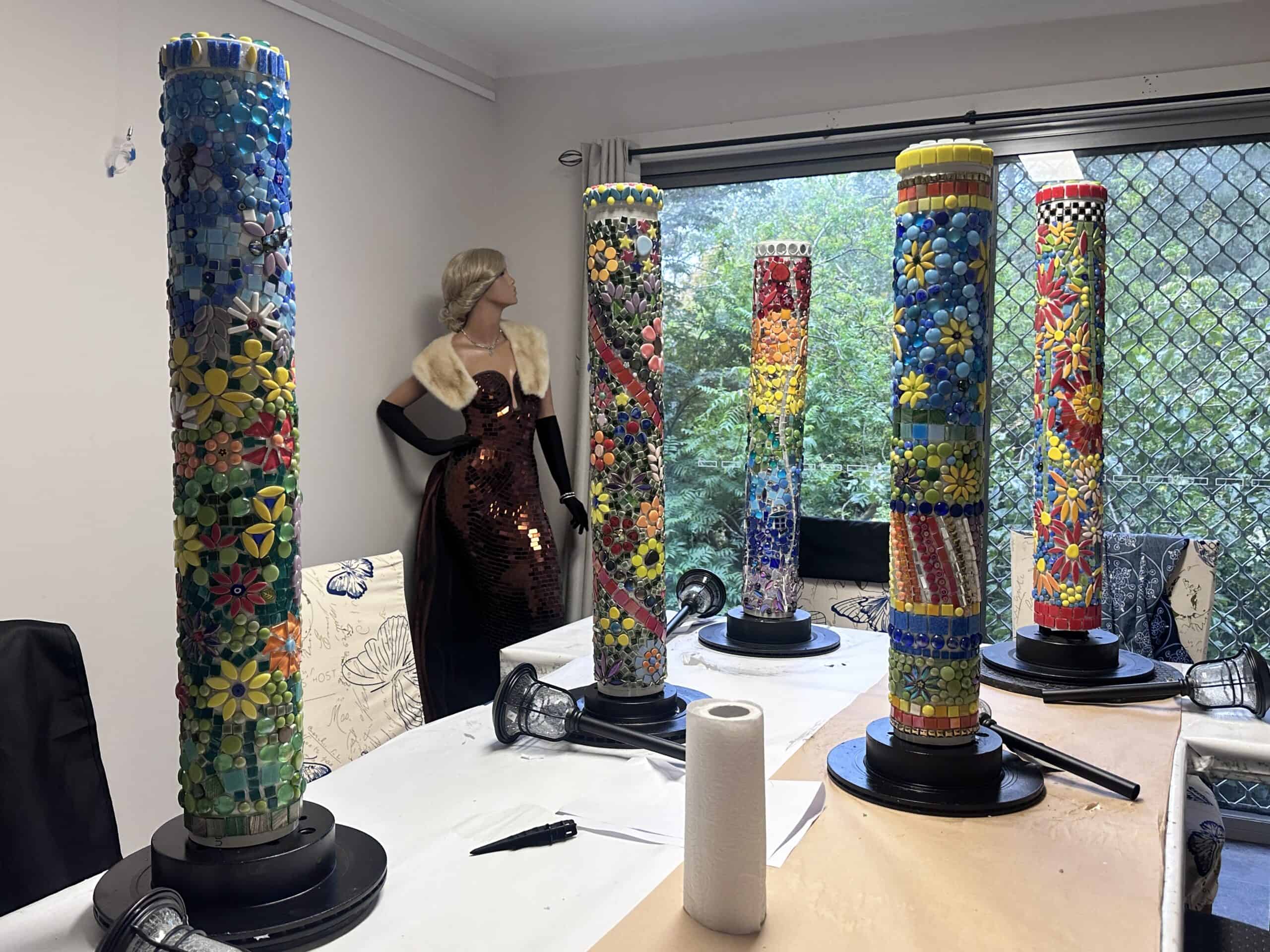 Join Belinda at Beliana Mosaics for a creative, hands-on workshop where you will design and mosaic your own decorative PVC totem pole, topped with something unique from your own collection — a teapot, sculpture, planter, birdbath bowl, or something wonderfully quirky. Using a selection of colourful tiles, glass, and decorative pieces, you will learn simple mosaic techniques while creating a one-of-a-kind feature piece for your outdoor space.
